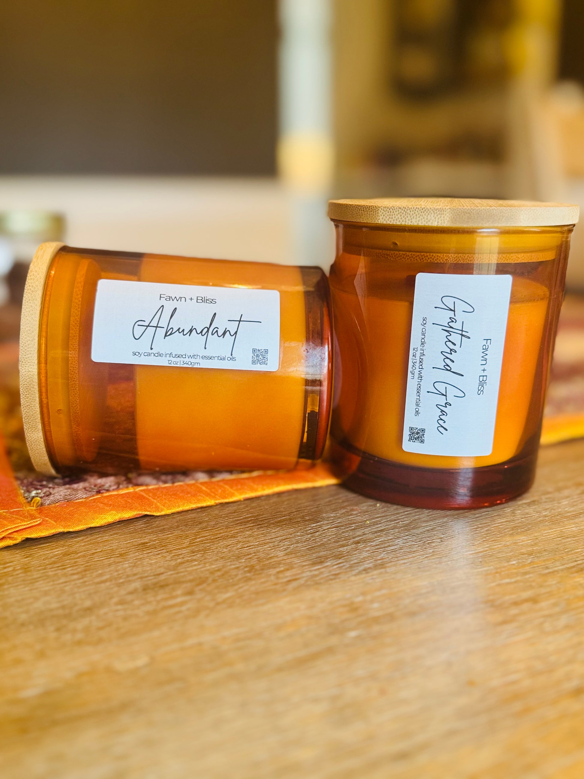 Gathered Grace/Abundant: A comforting embrace of clove and cinnamon lingers in the air, wrapped a golden glow. This scent captures the heart of the season — tables filled with laughter, hands wrapped around warm cups, and moments that invite us to slow down and simply be.